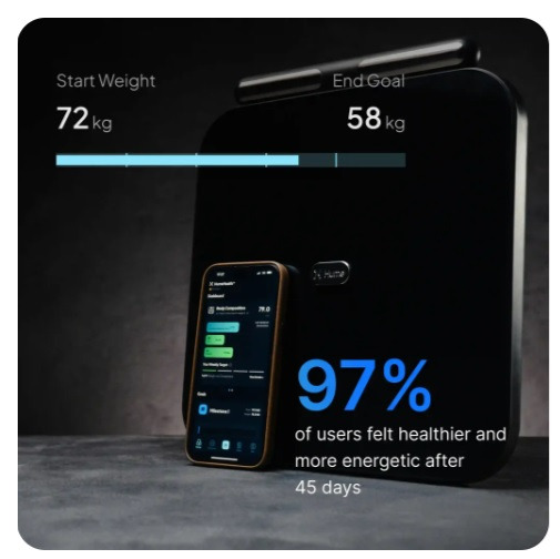 At first glance, it resembles a streamlined digital scale, but beneath the tempered glass surface lies technology that aims to provide insights typically associated with clinical body composition devices.